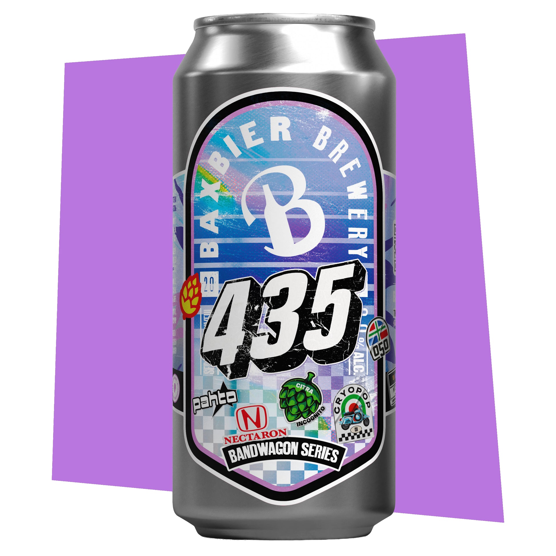 Voor de vierde en laatste Bandwagon van 2025 hebben onze Beer Mechanics weer alles uit de kast gehaald om op pole position te staan voor de laatste Hoppy Grand Prix van het seizoen. 435 klokt in op een stevige 9.0% alcohol, en is er daarom eentje om eens goed voor te gaan zitten. De opvallende parelmoerlak, de dik getunede hopcombo, en een mondgevoel dat past als een handgemaakte racestoel: Alles klopt. Time to hop on the Bandwagon!