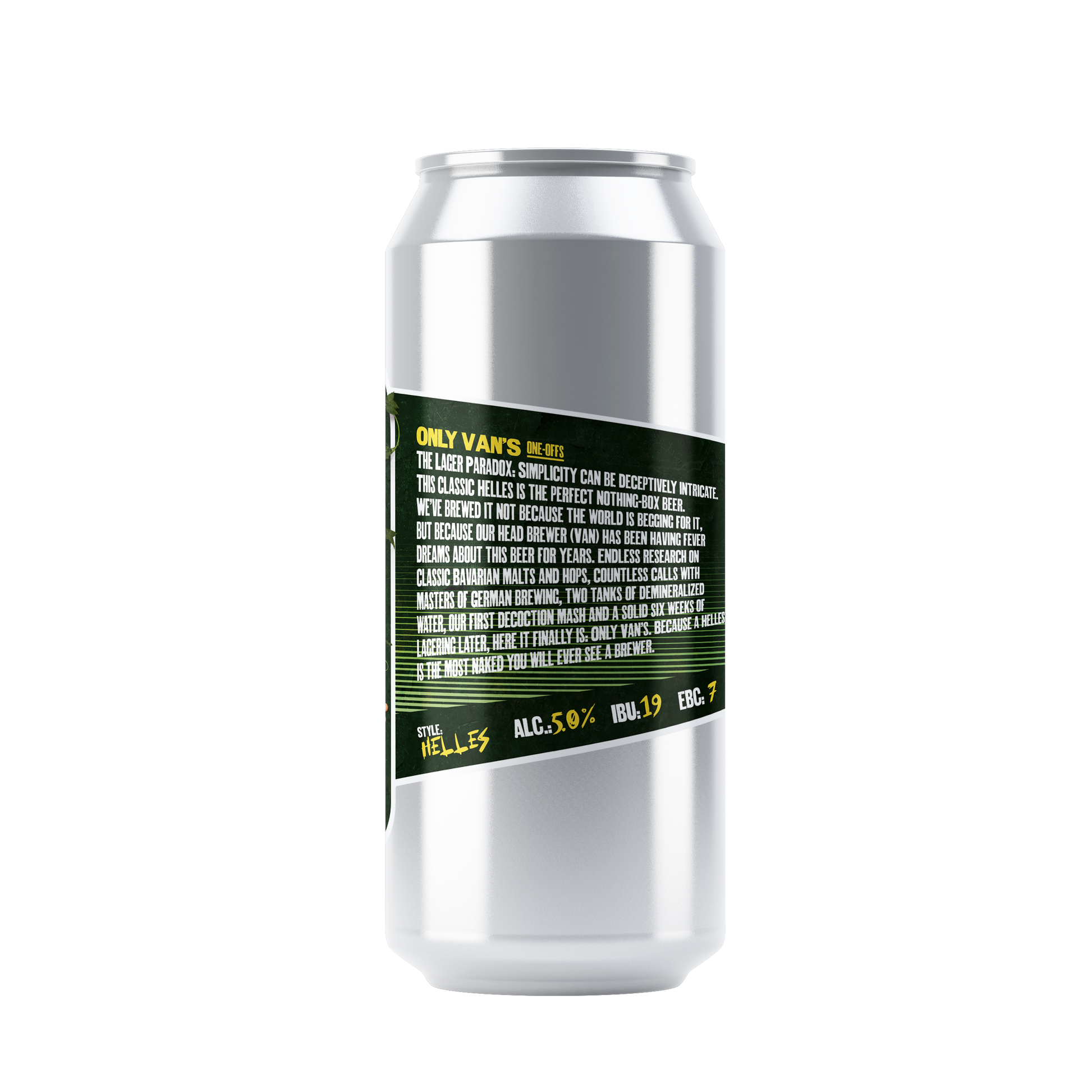 If it's nice brew it twice! Vorig jaar hebben we een jarenlange wens van onze hoofdbrouwer (Van) ingewilligd door eindelijk een echt klassieke Helles te brouwen. De verwachting was dat hij het allemaal zelf zou moeten opdrinken (vandaar de naam), maar jullie reacties waren overweldigend dus daarom dit jaar nog een keer! De lange koude lagering maken dit bier clean, crisp en extreem doordrinkbaar. De perfecte balans tussen moutigheid, subtiel nobele hop en de Duitse gist maken dit het ultieme "nothing box" bier.